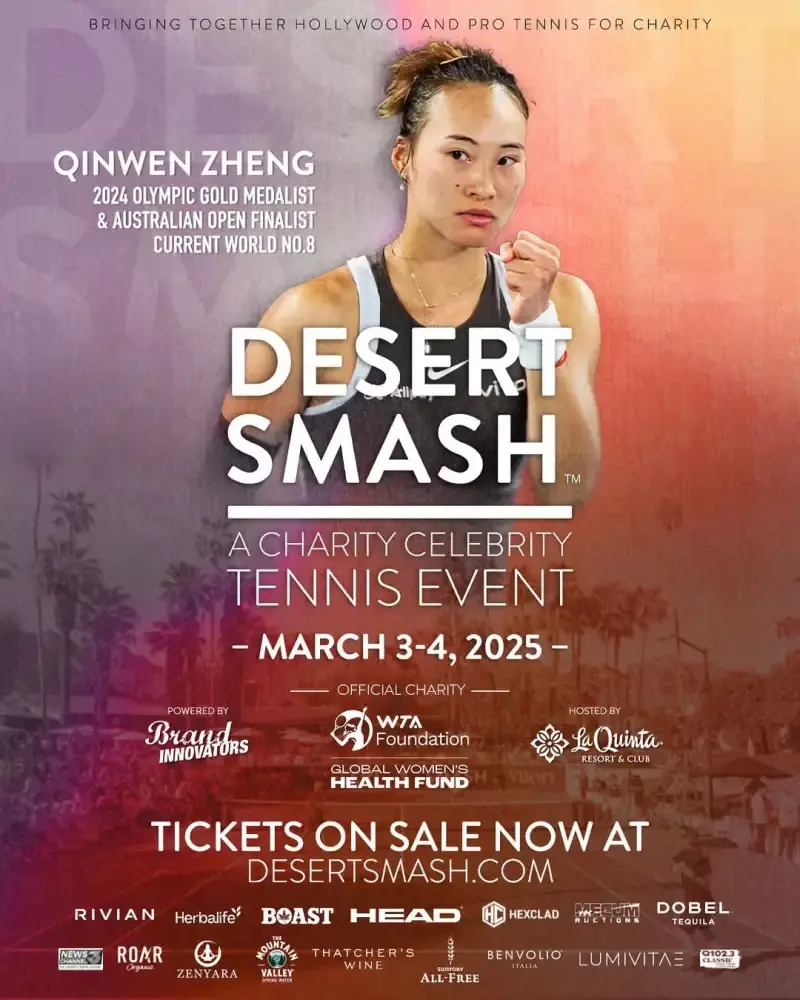 Desert Smash是一年一度的慈善网球盛事,积累了好莱坞明星和作事网球选手体育录像/图片,通过饰演赛和文娱动作为慈好行状筹款。该赛事创立于2004年,于今已筹集跨越360万好意思元的善款。前年,郑钦文就插足过该项赛事。