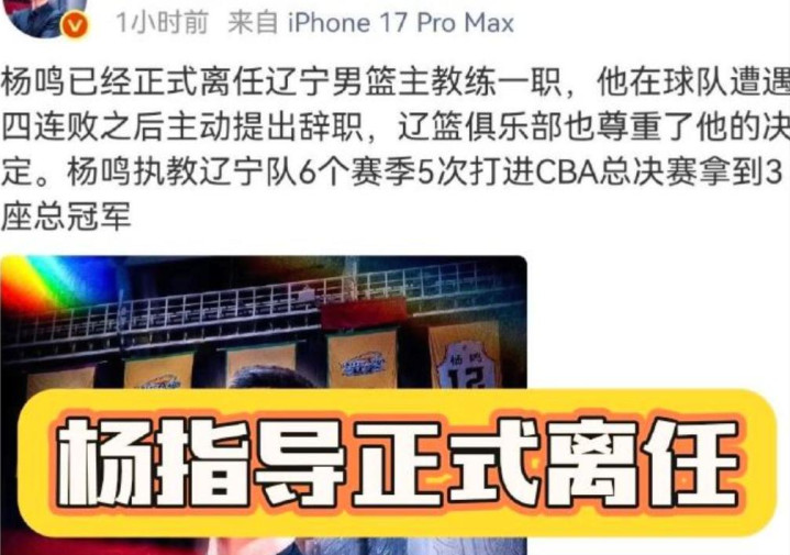 临了一个音书共享一下杨鸣下野辽篮的情况。尽管目下新赛季的比赛还处于第一阶段,但目下辽宁男篮却爆出一个很劲爆的音书,他们球队三连冠功勋主教师杨鸣在最近如故致密向球队下野,况且通过球队的允许。目下如故细则将会离开球队,后续球队的助理教师将接替他的位置。固然这个音书还莫得得到球队的证实,然则目下各路媒体东谈主王人基本上证实了这个音书,也意味着离开球队是未达一间了。