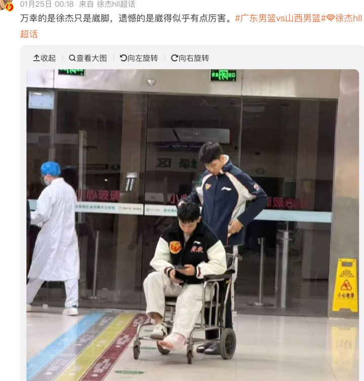 当先第一个音书,共享一下徐杰伤病更新的情况。在对战山西男篮的第二次交手当中,咱们看到徐杰在比赛经由当中出现了脚腕受伤的情况。后续送到病院进行查验之后,目下最新的伤病如故致密出炉。